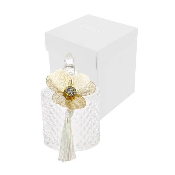 Bomboniera Crilù Scatolina vetro con fiori in filigrana oro cm 6,5 x 10 completa di confezione