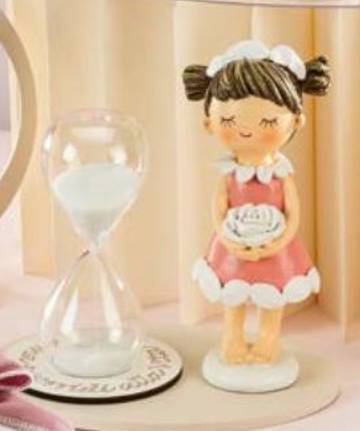 BOMBONIERA CLESSIDRA CON BIMBA COMPLETA DI CONFEZIONE