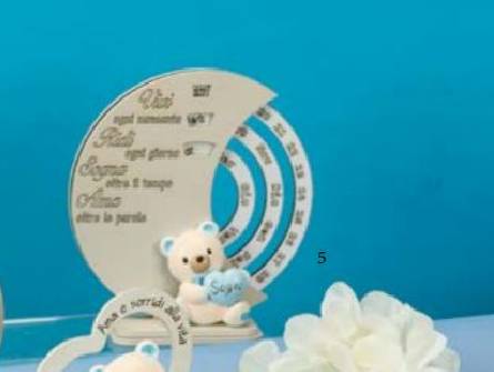 Bomboniera Datario con orsetto cm. 12 x 13 completa di confezione