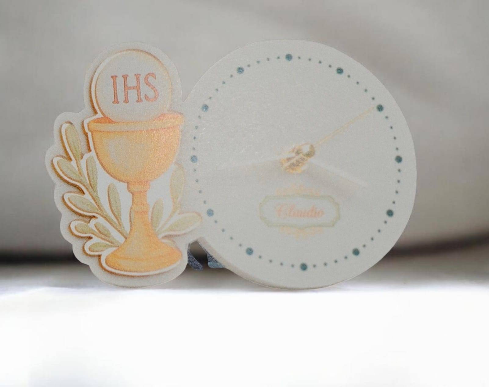 Orologio Prima Comunione personalizzato cm. 19 x 12 p.3 con scatola personalizzata e confetti