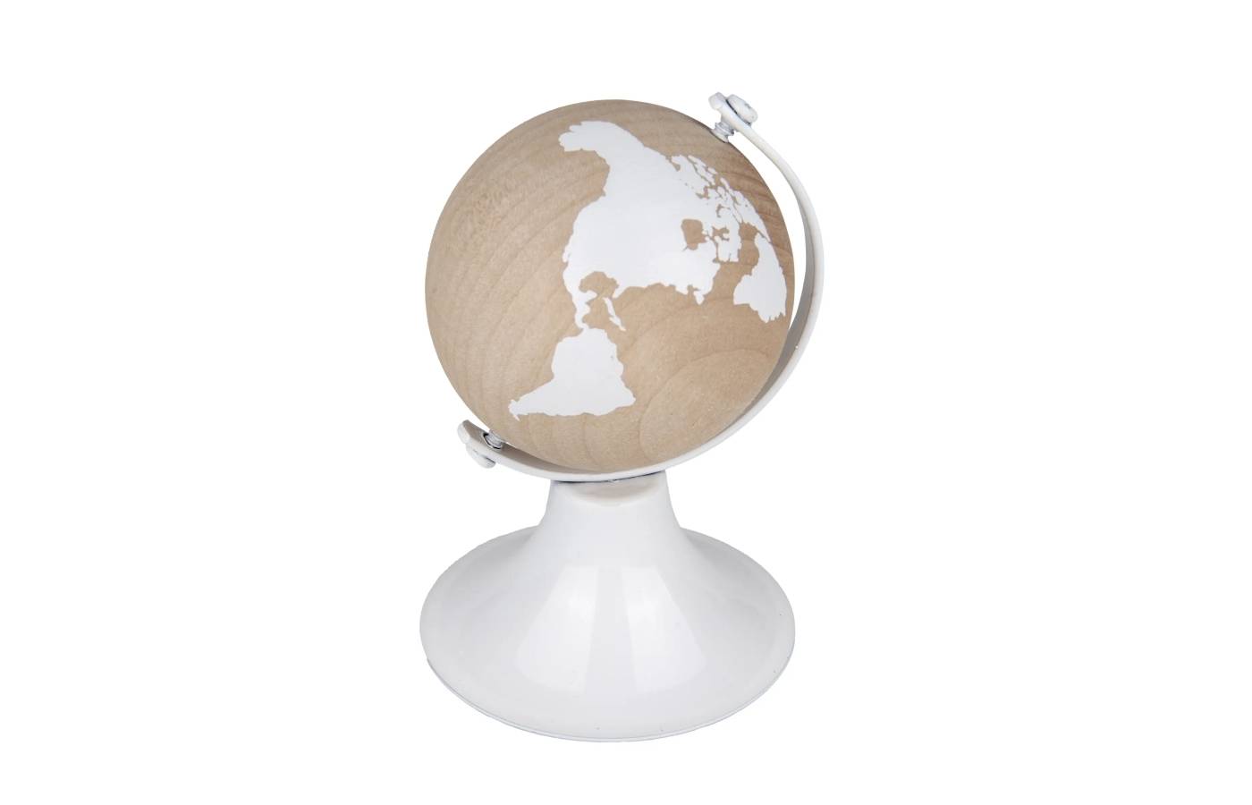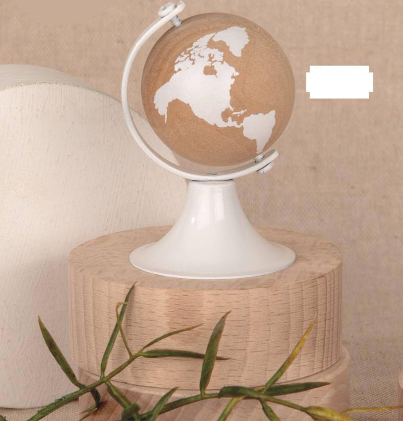 Mappamondo in legno cm. 7 con scatola e addobbi sulla scatola,