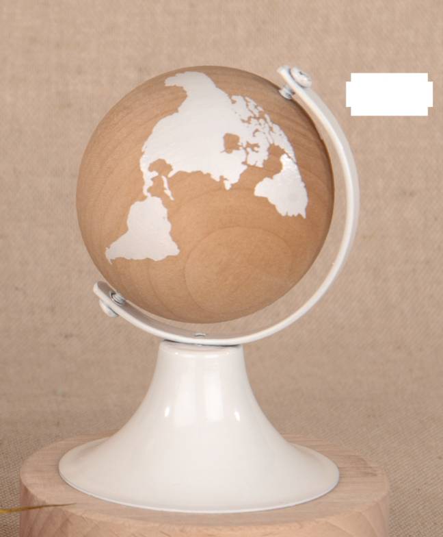 Mappamondo in legno cm. 8,5 con scatola e addobbi sulla scatola,