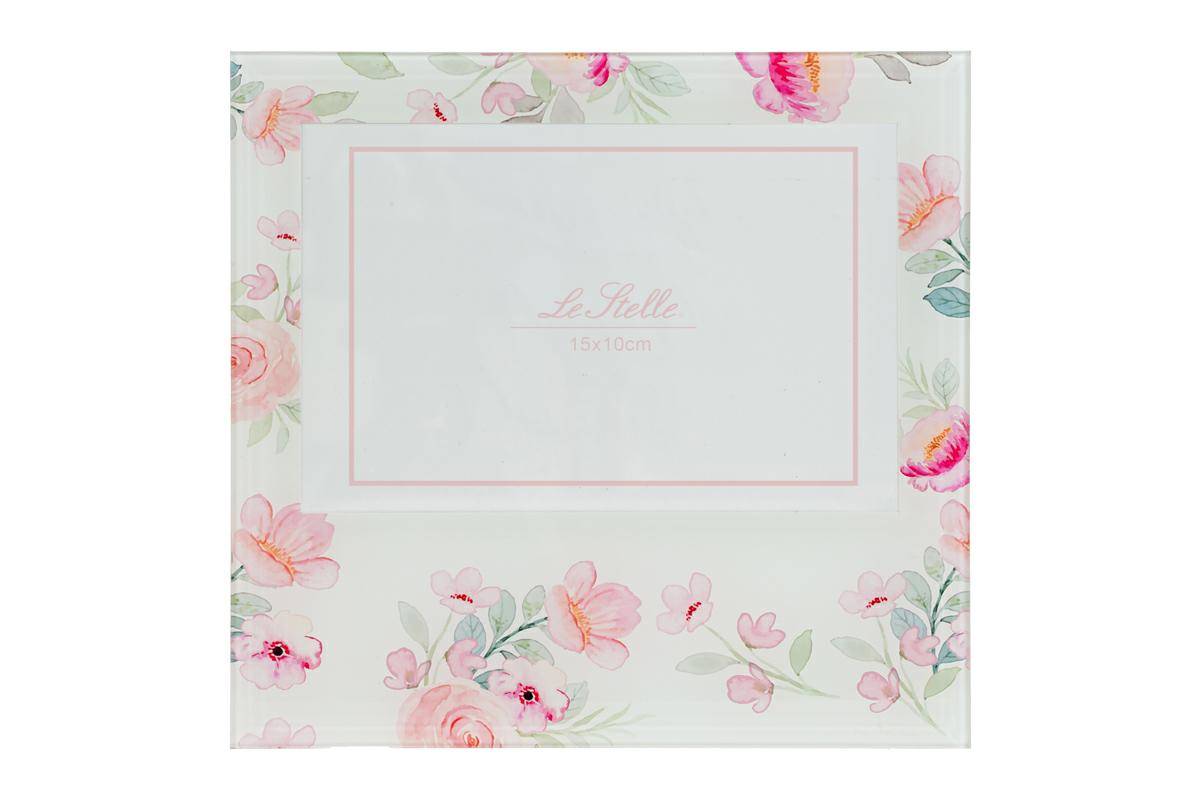 PORTAFOTO IN VETRO DECORO FIORI CON CONFETTI