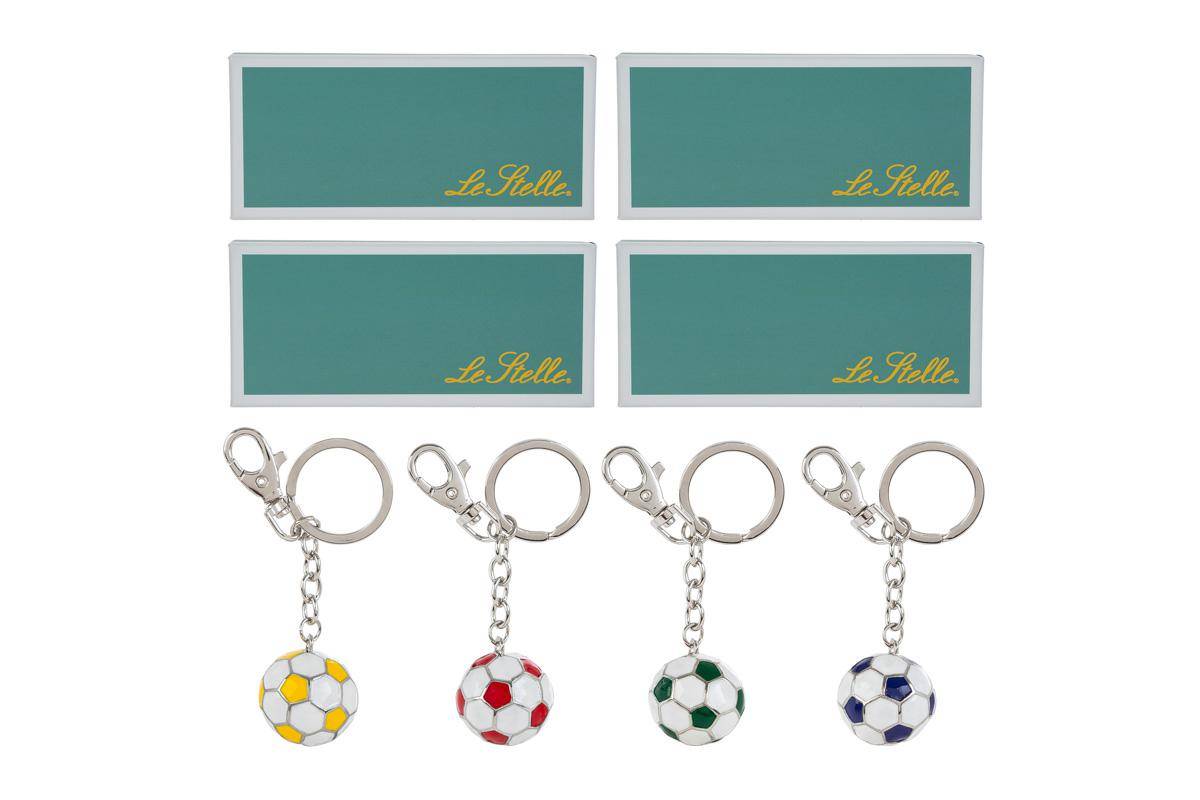 Portachiavi pallone metallo 4 assortiti con astuccio cm. 3 x 10 e confetti