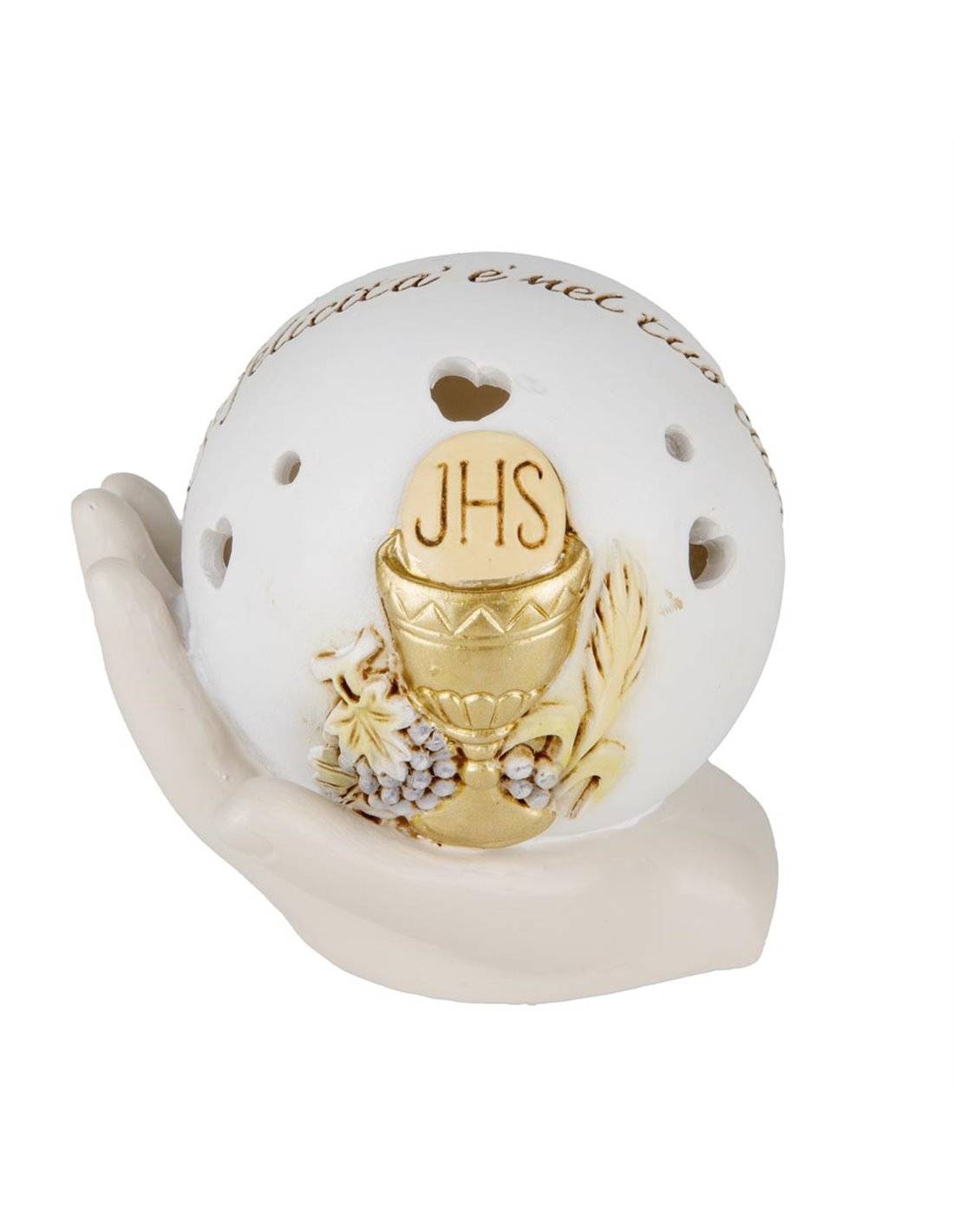 Bomboniera mano con calice a led cm. 8 h con scatola e e addobbi sulla scatola,