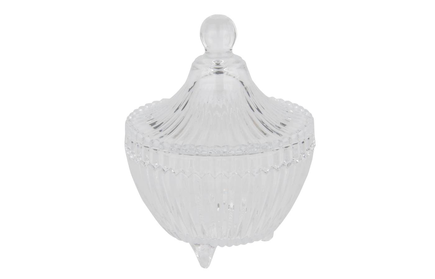 Bomboniera vetro cristallo rotonda con 3 piedi con scatola 7 x 9