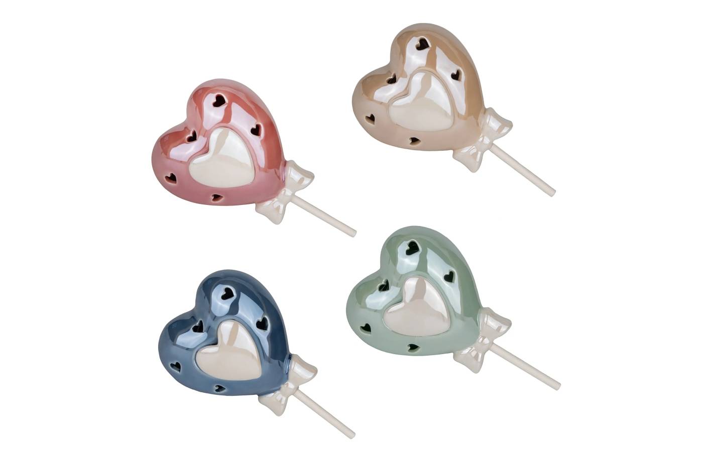Bomboniera doppio cuore a led in porcellana cm 8,5 confezionata con 5 confetti gusto