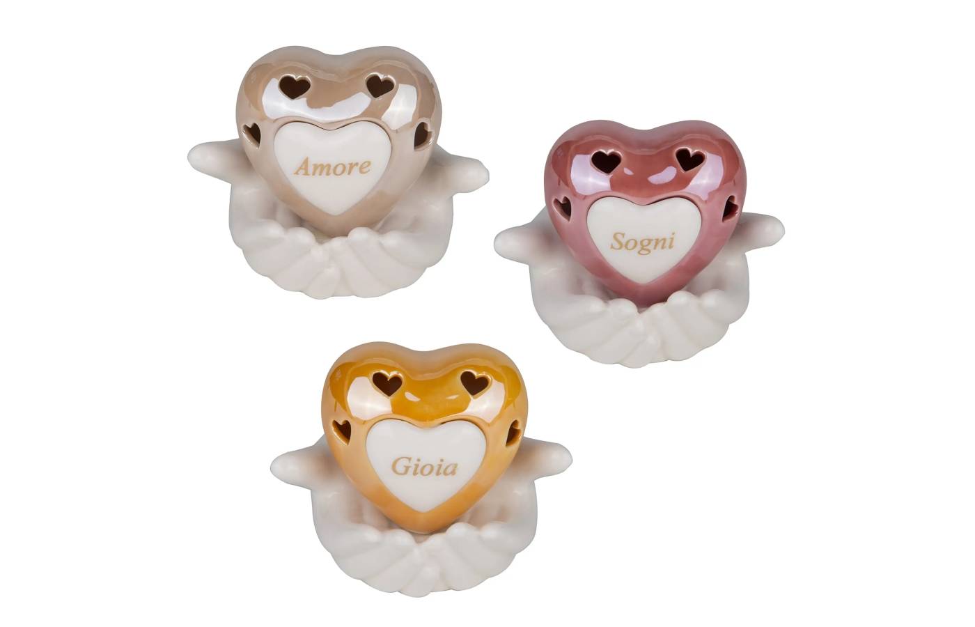 Bomboniera cuore LED SU MANO in porcellana diametro 10 X 9 con scatola e confetti