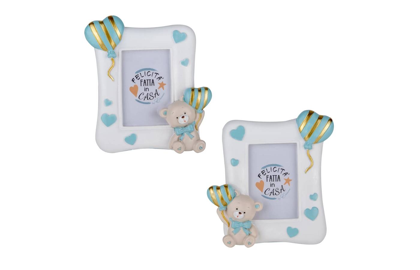 Portafoto Orsetto con palloncini in resina cm.10 x 12 con scatola personalizzata e confetti