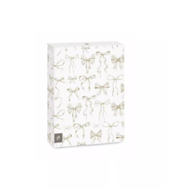 Portafoto con fiocco oro con scatola in coordinato e confetti cm.17 x 20 per foto 9,5 x 12