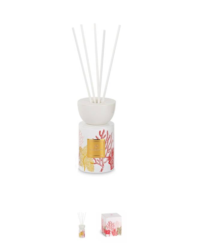 Bomboniera Profumatore ambiente corallo cm 6,5 x 12 con scatola personalizzata 100 ml e confetti