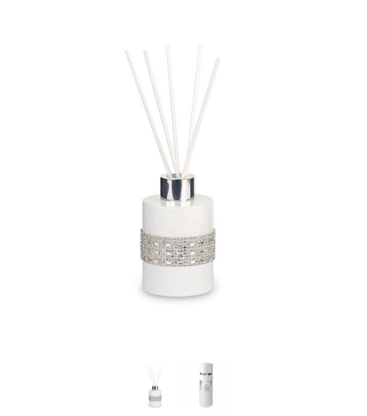 Bomboniera Diffusore in vetro bianco con strass cm 6 x 9,5 con scatola personalizzata e confetti