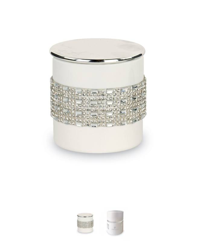 Bomboniera candela in vetro bianco con strass cm.6 x 6,5 con scatola personalizzata e confezionata con 5 confetti gusto