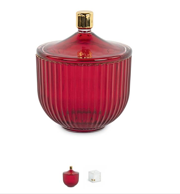 BOMBONIERA POTICHE PLISSE' IN VETRO E CONFETTI