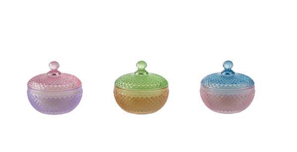 Bomboniera Candela in vetro in barattolo cm 8,5 x 7 con scatola e confetti 3 assortiti