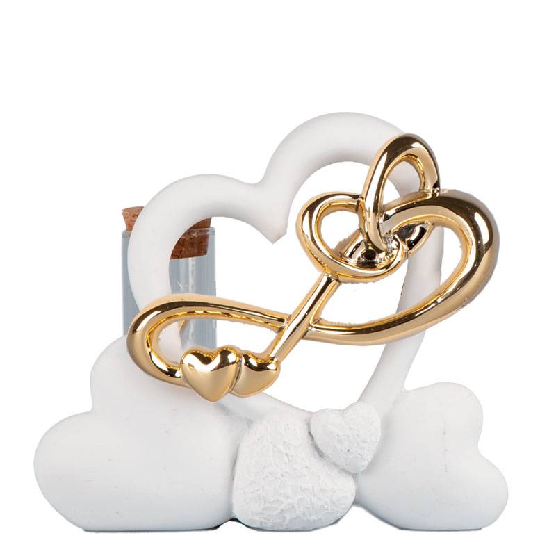 Bomboniera cuori oro intrecciati cm. 12 con scatola e confetti