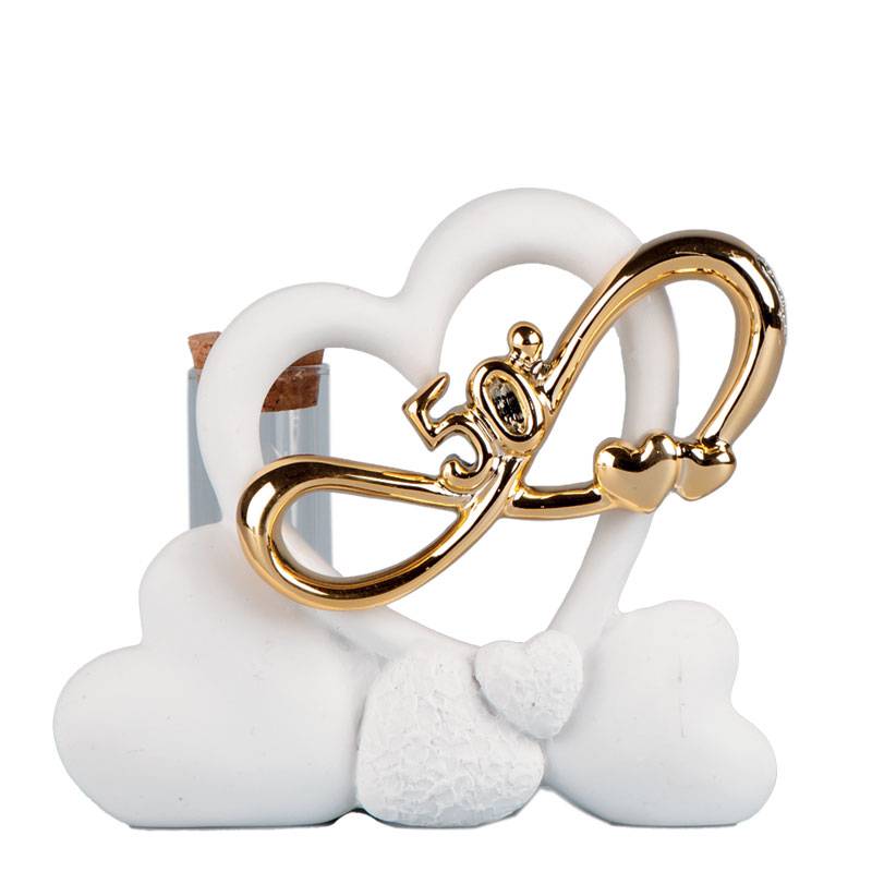 Bomboniera cuori oro intrecciati nozze oro cm. 12 con scatola e confetti