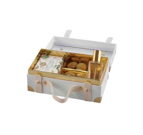 Valigetta con 1 saponette e 1 profumatore cm. 16 x 10 x 7 confezionata con confetti gusto