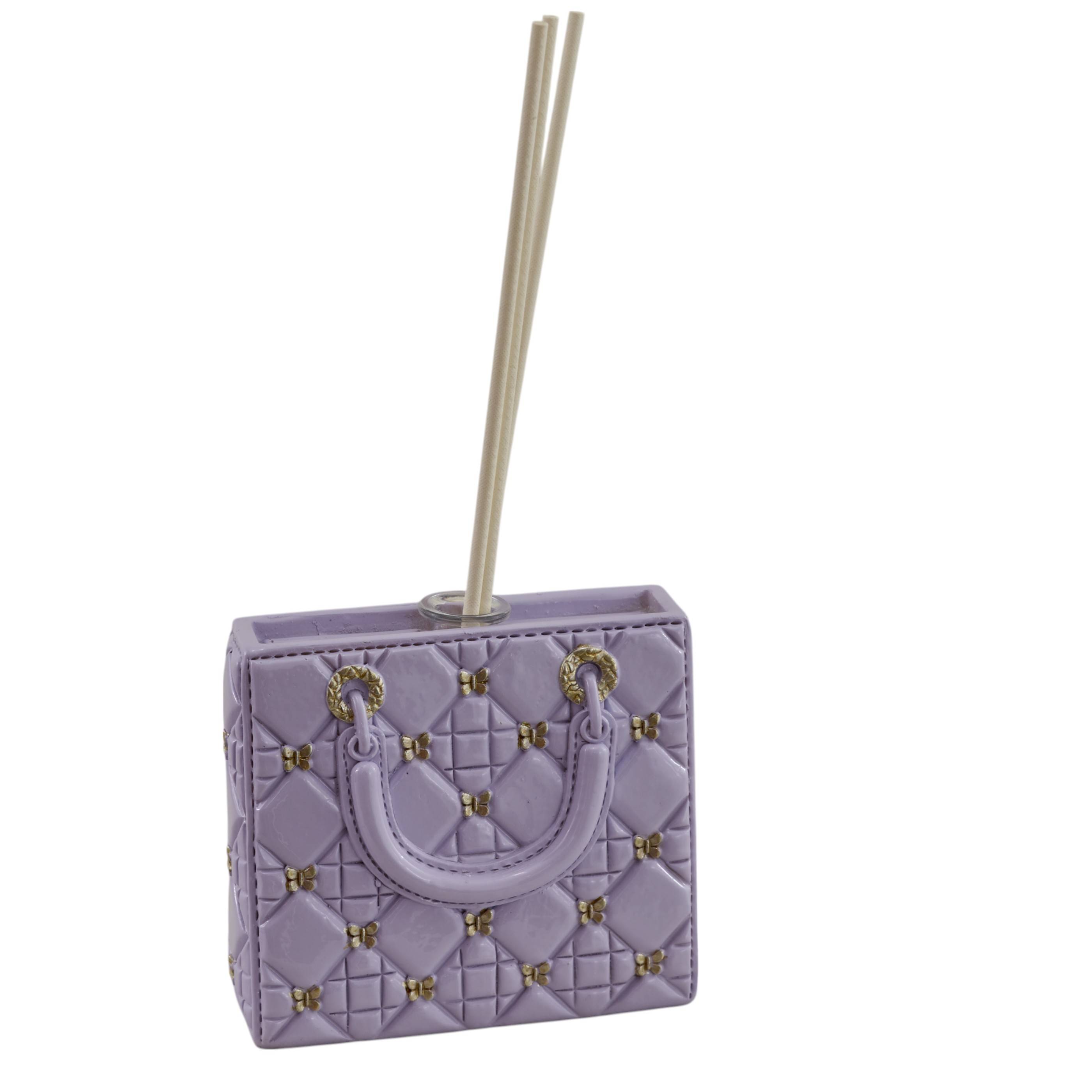 Profumatore borsetta con manico lilla cm. 9,4 X 4,5 x 8,5 con scatola e confetti