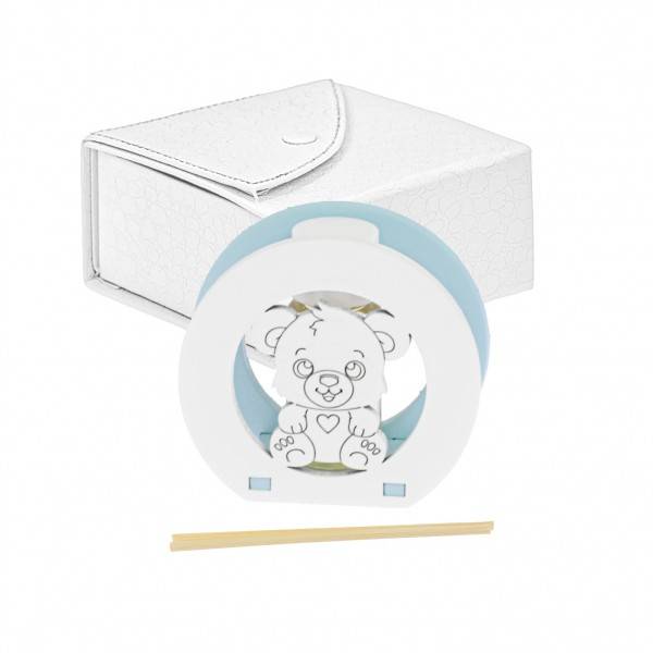 Profumatore Orsetto in legno con scatola in pelle diametro 7 con profumo completa di confetti