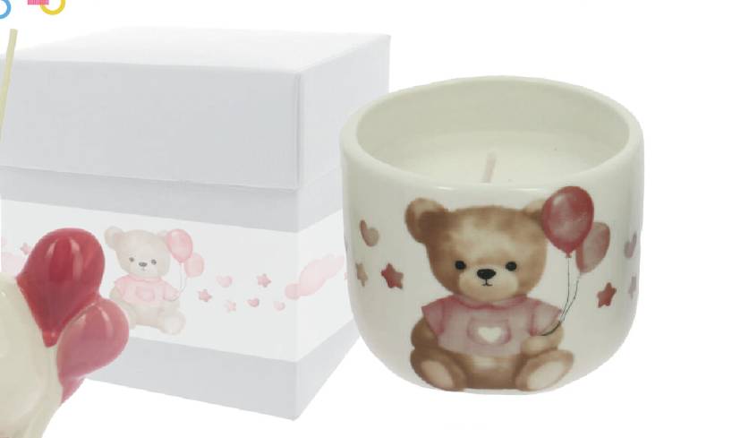 Bomboniera candela orsetto completa di confezione cm 6,5