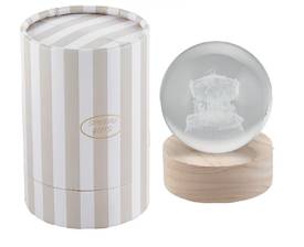 Bomboniera Sfera di vetro led con giostrina e base in legno completa di confezione cm 8 x 10
