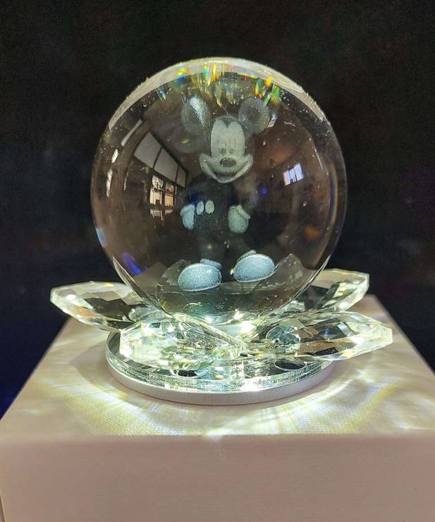 Bomboniera Sfera di vetro led con Topolino con base in cristallo completa di confezione cm 6