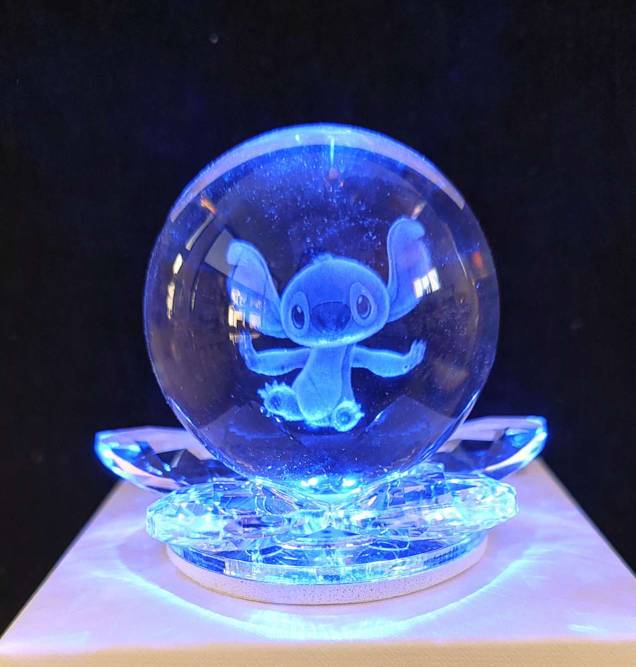 Bomboniera Palla di vetro led con STITCH con base in cristallo completa di confezione cm 6