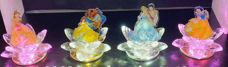 Bomboniera Fiore in cristallo a led con Principesse a scelta completa di confezione cm 10