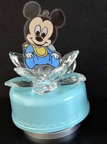 Bomboniera carillon con fiore in cristallo con Topolino completa di confezione