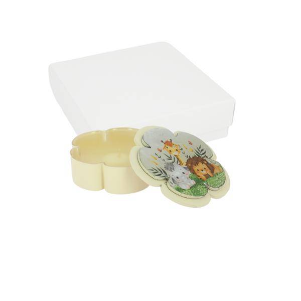 Bomboniera Candela a fiore animali savana cm. 10 x 4 completa di confezione