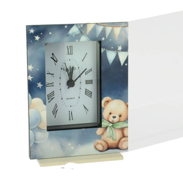 Bomboniera Sveglia Orsetto cm. 9,5 x 13 in legno completa di confezione