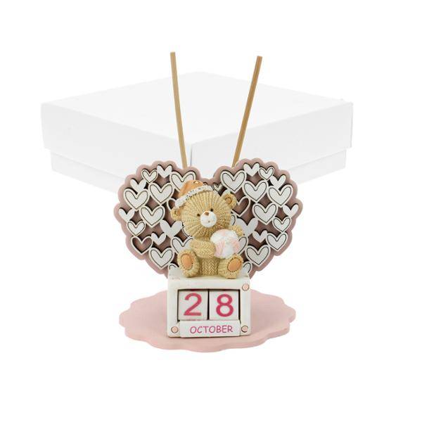 Bomboniera Profumatore in legno Datario con orsetto cm. 10 x 9 con completa di confezione