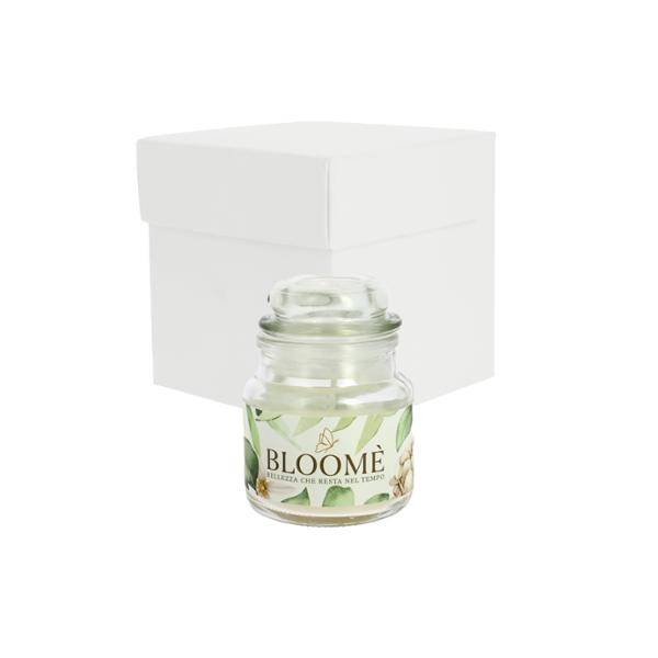 Bomboniera Candela profumata barattolo di vetro cm 6,5 x 8,5 con scatola personalizzata e confetti
