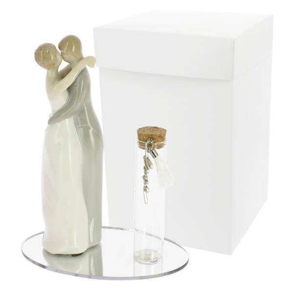 Bomboniera Coppia bacio in porcellana lucida cm. 14 x 18 con scatola personalizzata e confezionata con 5 confetti gusto