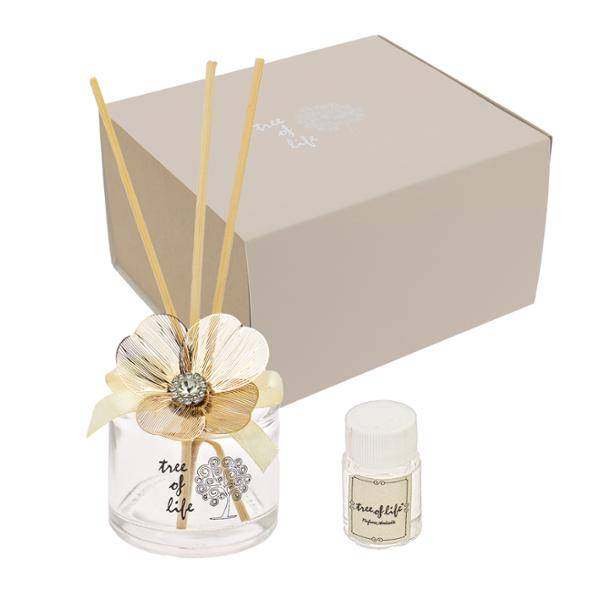Bomboniera Profumatore con fiore in filigrana oro cm 5,5 x 5,5 completa di confezione