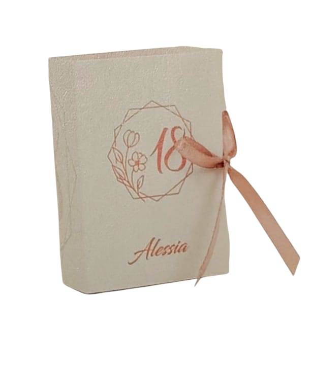 Scatolina 18 anni con il nome a libro 5 x 9,5 x 4 p