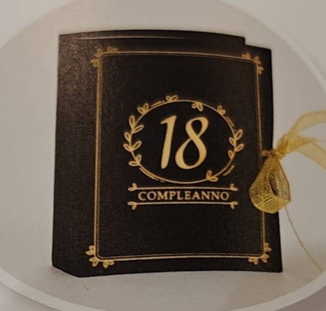 Scatolina 18 anni con il nome a libro 5 x 9,5 x 4 p