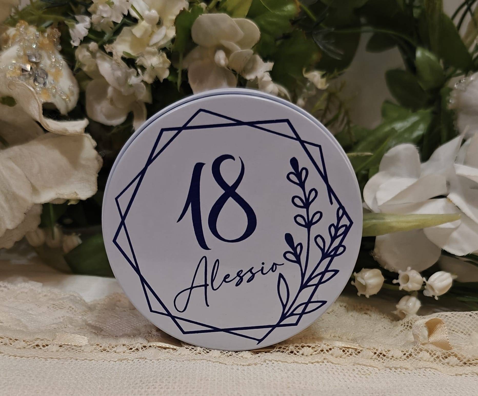 Box in latta 18 anni con il nome 9 x 9 x 4,5 p