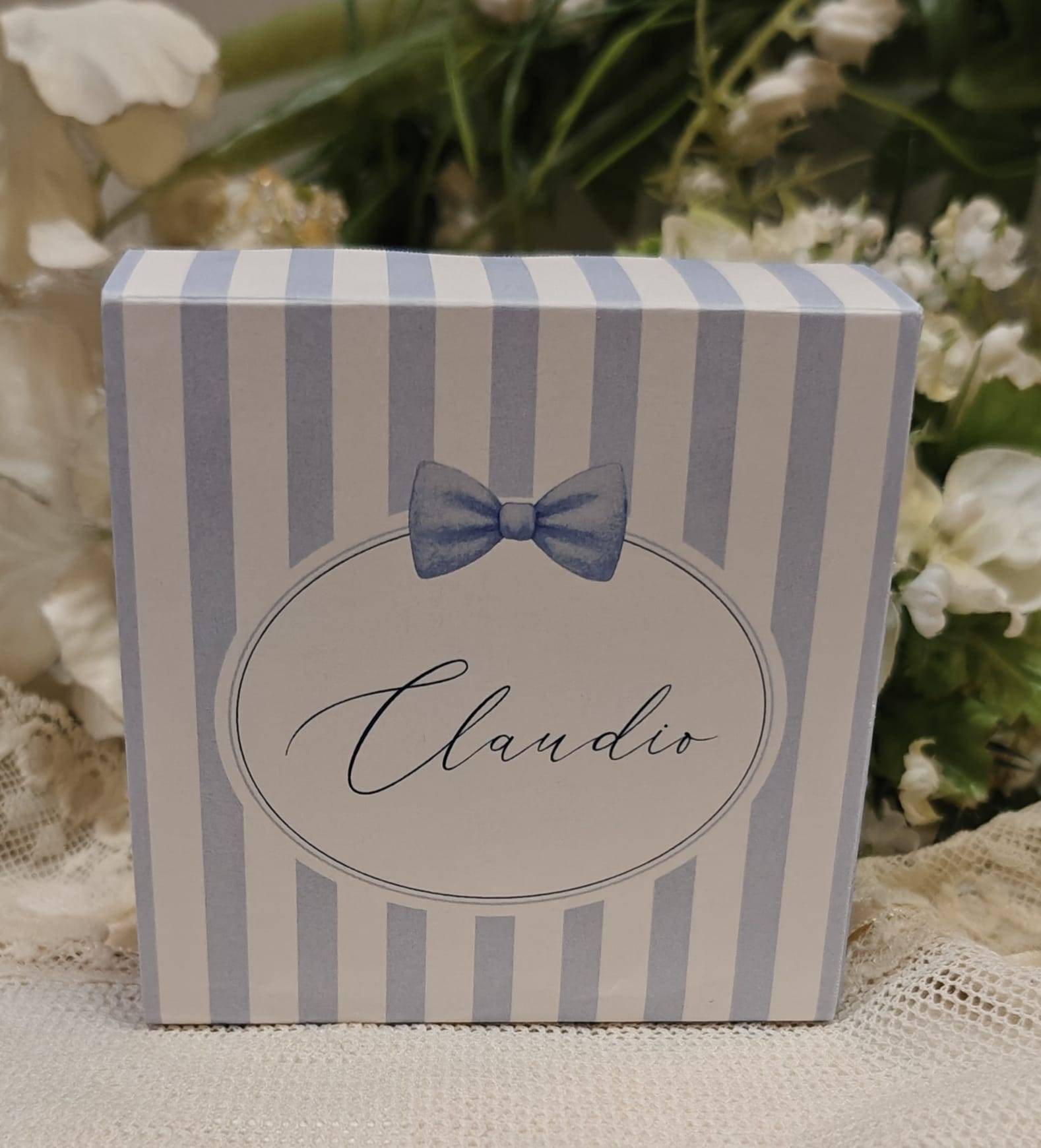 Scatolina Nascita con il nome completa di confetti bigliettino in coordinato
