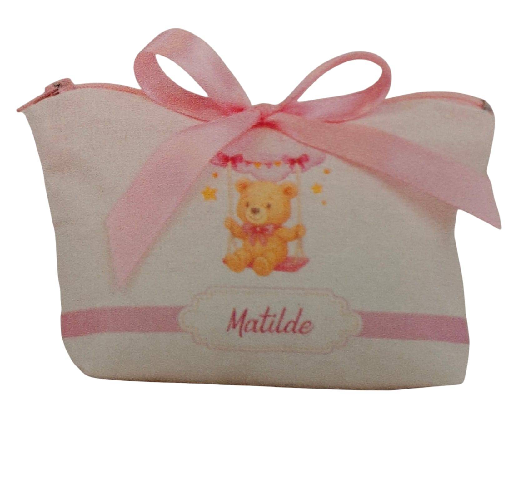 POCHETTE CON CERNIERA ORSETTO CON NOME E CONFETTI