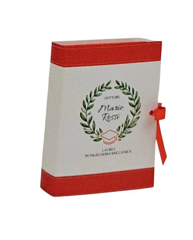Scatolina Laurea a libro con il nome completa di confetti bigliettino in coordinato