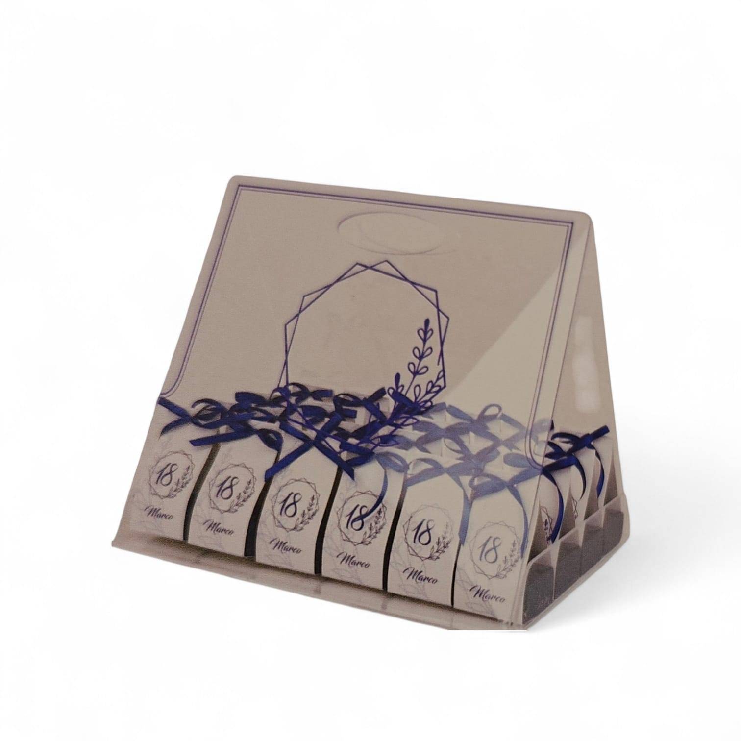 Espositore con 24 Scatolina 18 anni con il nome completa di confetti