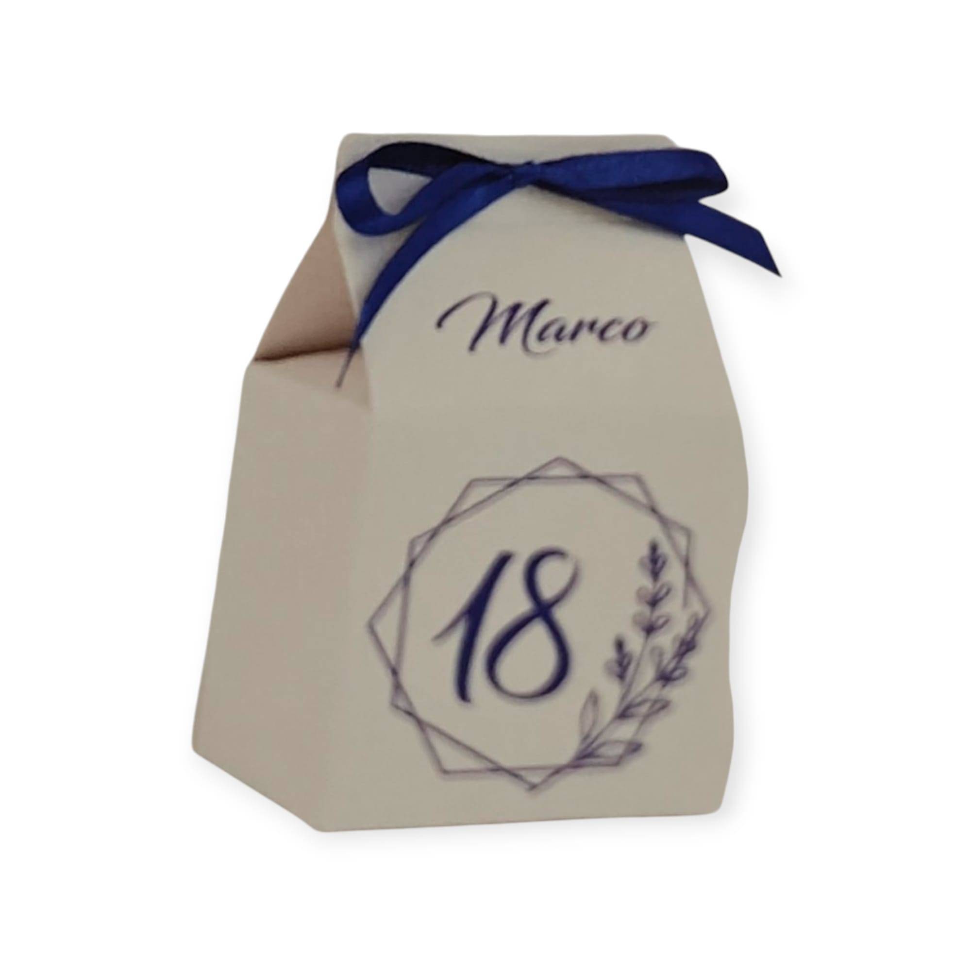 Scatolina 18 anni con il nome 6 x 10,5 x 6 p completa di confetti
