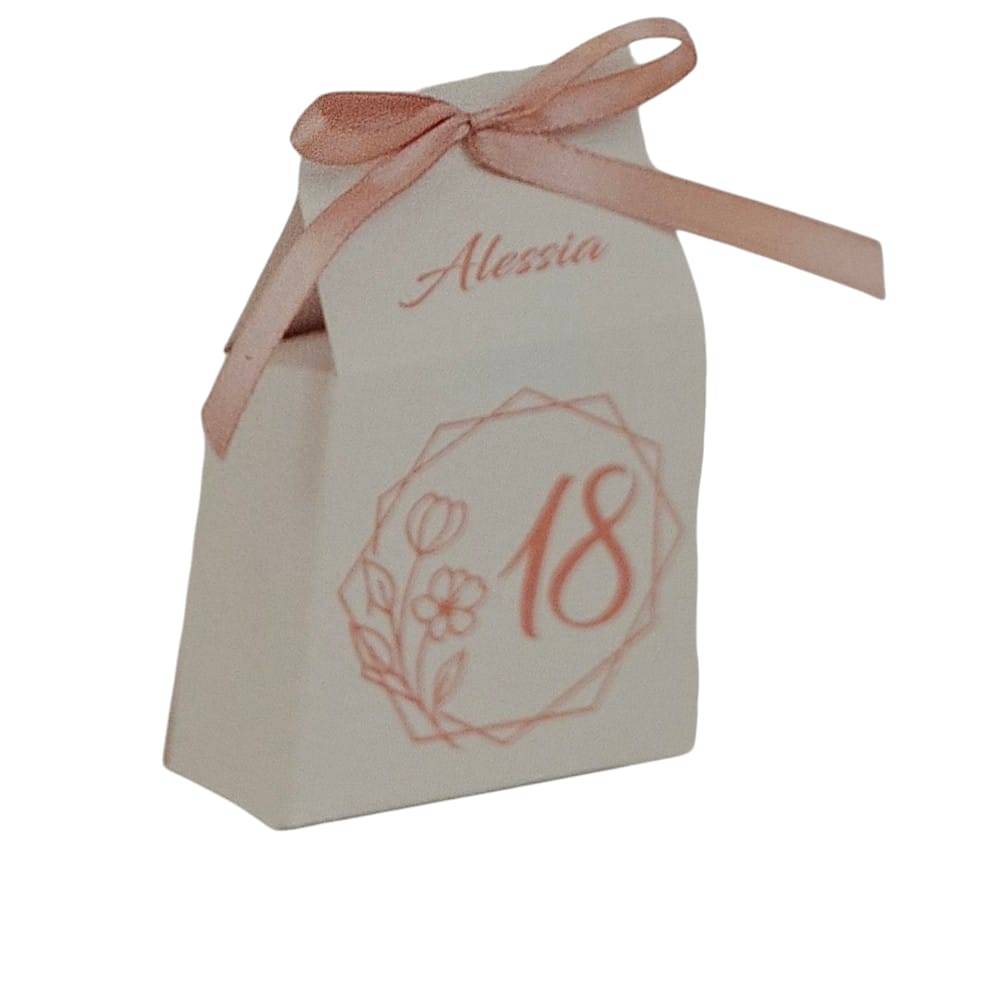 Scatolina 18 anni con il nome 6 x 10,5 x 6 p completa di confetti