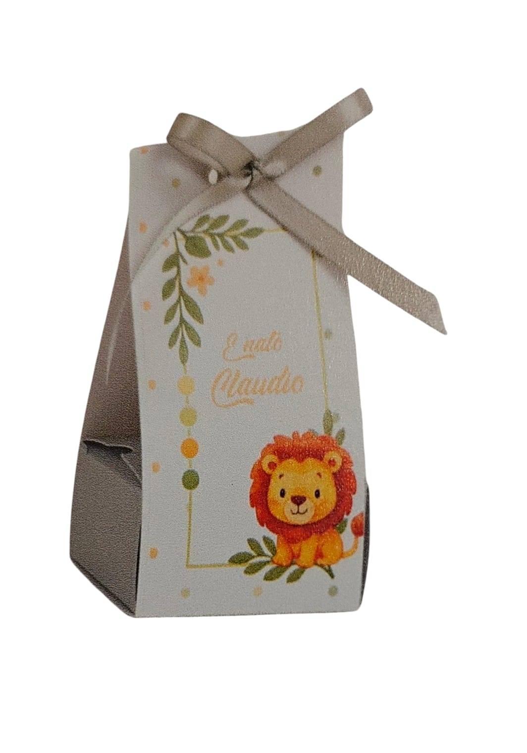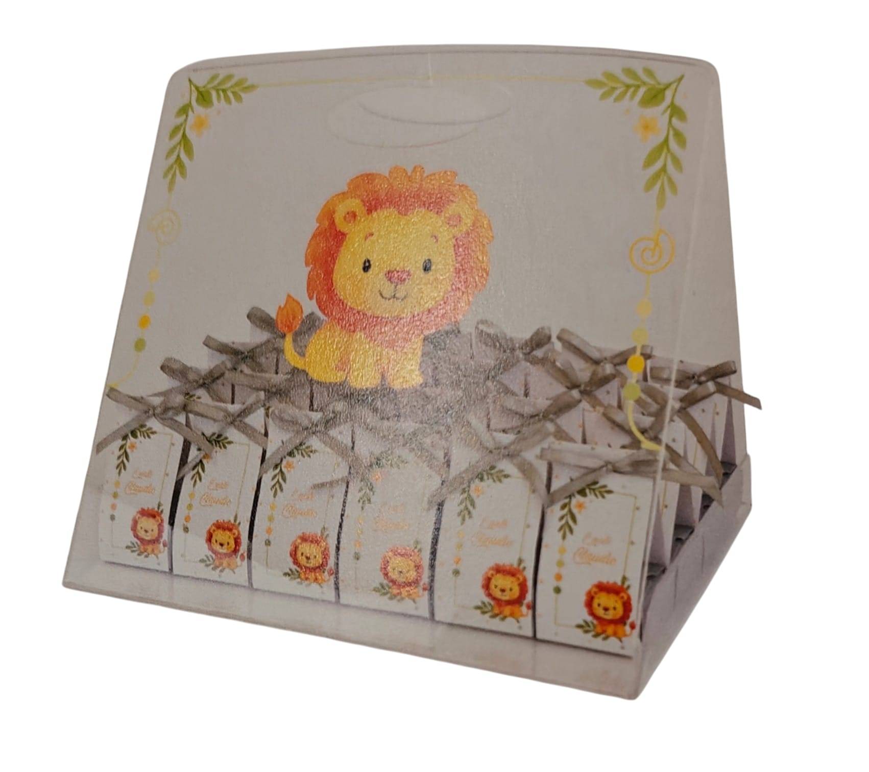 Espositore con 24 Scatolina Nascita leoncino con il nome completa di confetti