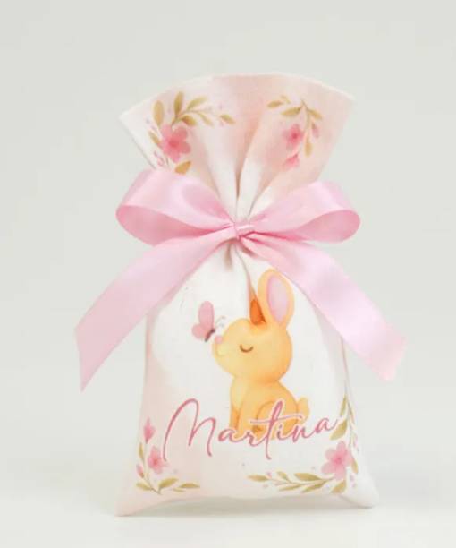SACCHETTO NASCITA CONIGLIETTA CON IL NOME E CONFETTI