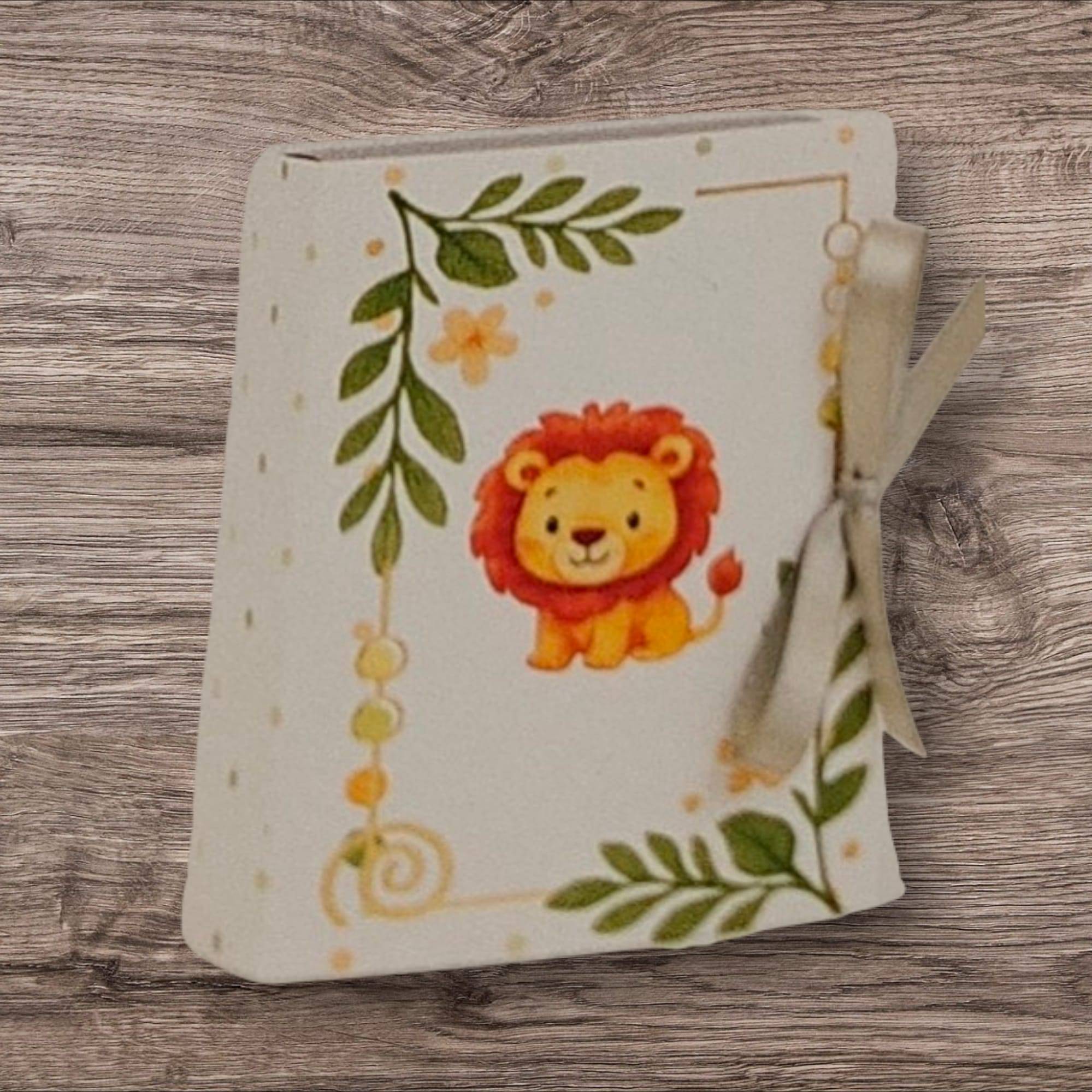 Scatolina Nascita Leoncino con il nome completa di confetti bigliettino in coordinato
