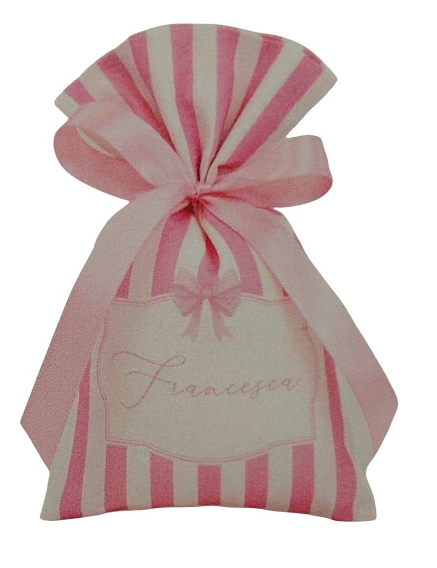 SACCHETTO NASCITA A RIGHE CON IL NOME E CONFETTI