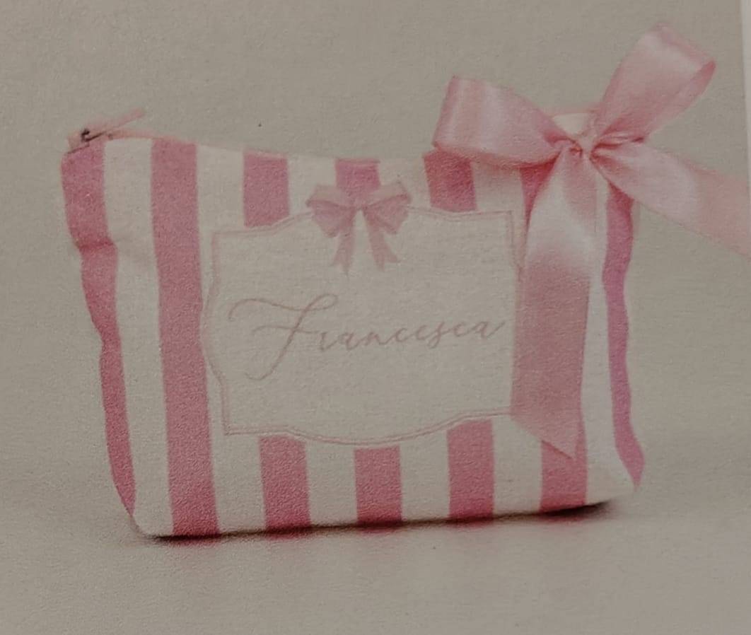 Pochette di cotone con cerniera stampato con nome 13 x 9 completo di confetti